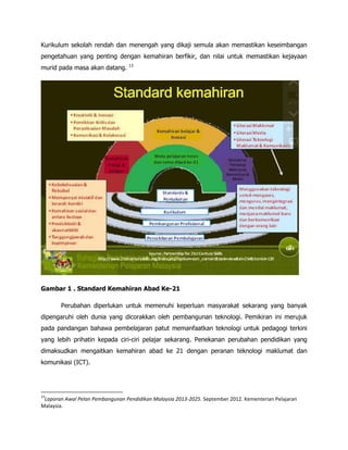 Pelaksanaan berperingkat bermula daripada penyediaan bilik kelas susunatur dan keperluan fizikal dalam bilik darjah abad 21 kemudian diteruskan dengan penyediaan rancangan mengajar dan pelaksanaan PP Abad 21. Kesian guru-guru di Sabah guru mengajar sampai 3 4 subjek waktu mengajar sehingga 40 waktu seminggu. Pendidikan Kebangsaan dan menyediakan murid menghadapi arus globalisasi serta ekonomi berasaskan pengetahuan pada abad ke-21.